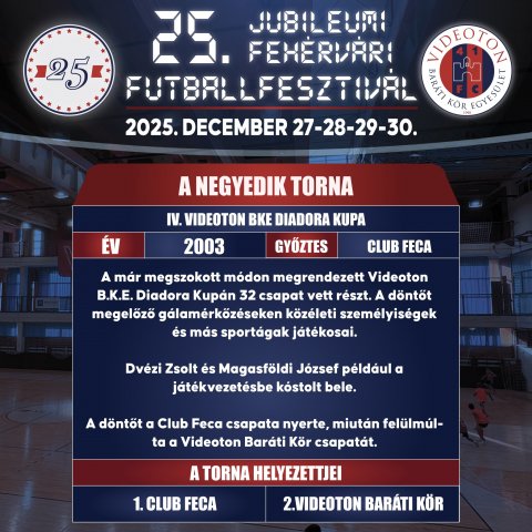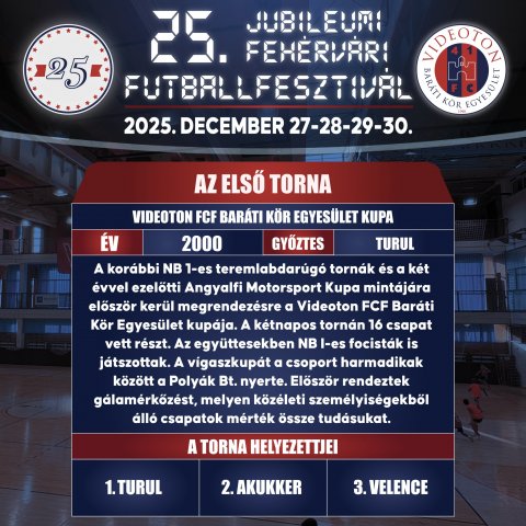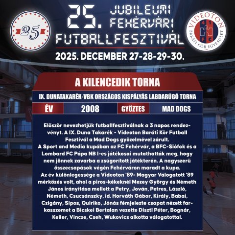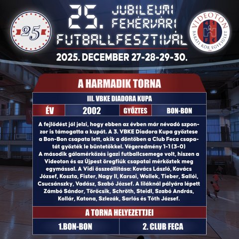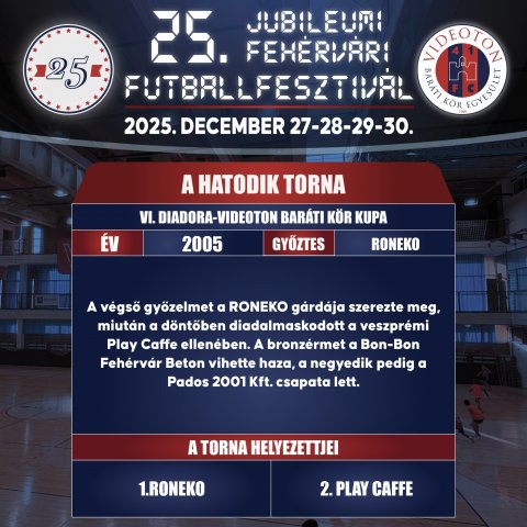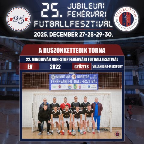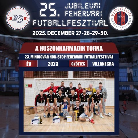 A Villanegra csapata megvédte a bajnoki címét újfent, így 2025-ben újra címvédőként léphetnek a parkettre!![]() 2025 – XXV. PADOS-GROUP Fehérvári Futballfesztivál
